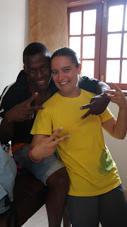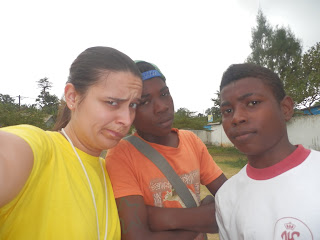 Hoje acordamos com um STP chuvoso. Mas não é aquela chuva molha tolos típica de cá. É uma chuva mesmo chuva! Daquelas que conhecemos de Portugal. (Dito assim parece que sou doida eheh) Mas cá não existe a possibilidade de "Ah..vou ficar em casa a ouvir a chuva cair." Aqui, os dias não param e os pequenos continuam à nossa espera. Assim, envolvidos nos impermeáveis, lá fomos até Batepá. Como não tínhamos lá as crianças, ficamos na sacristia com a D. Augusta, a dançar kizomba. Estava eu e a Catarina, com o Vani, o Esmael e o Edgar. Lá se levantou o Vani para dançar kizomba comigo e acho que não o deixei ficar mal.